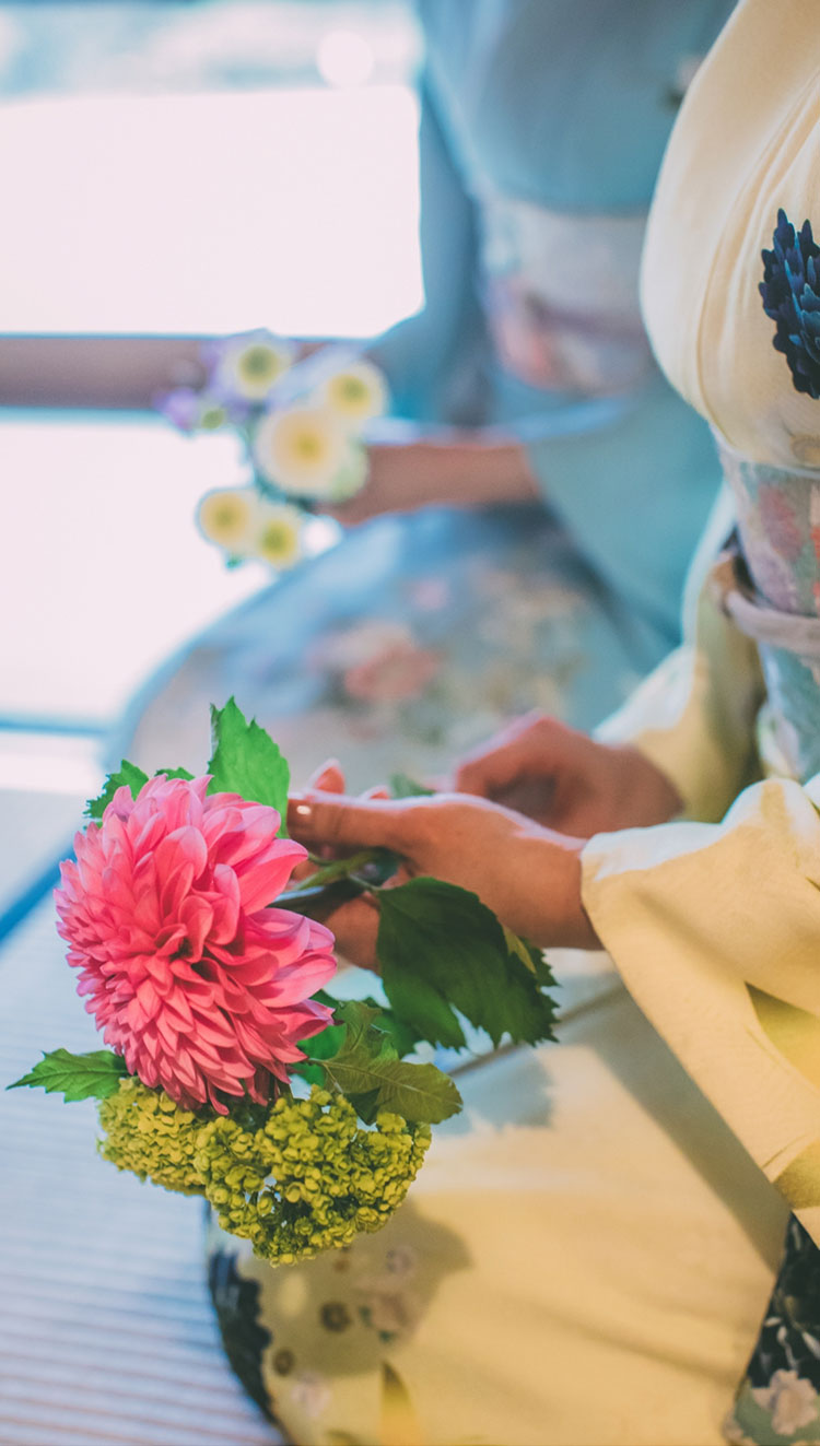 いけばなは生きたインテリアです。草木の命を尊び、花の命を生ける心と技を学びます。