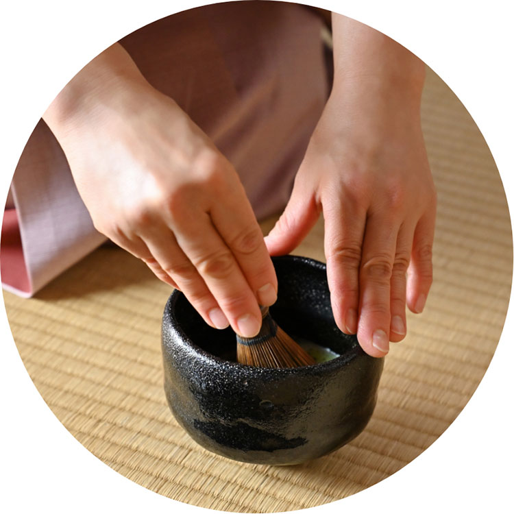 茶の湯の礼儀作法、和室での立ち居振る舞いと和敬静寂の精神を収得できます。