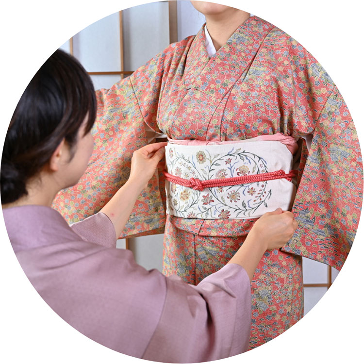 お茶会、花展、パーティーなど自分で和服が着られるよう、着せてあげられるよう学びます。